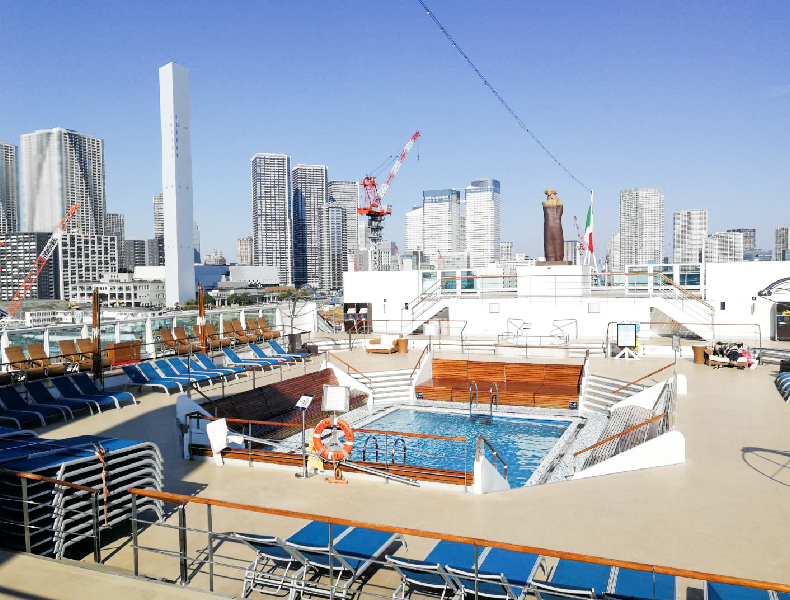 全長が221mなのでクルーズの端から端まで歩いても、それほど疲れませんし、このくらいのサイズが最初のクルーズにはいいのかもしれません。